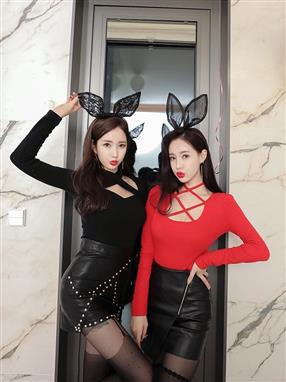 美艳诱人姐妹花黑丝长腿兔女郎装扮嘟嘟嘴撩人写真