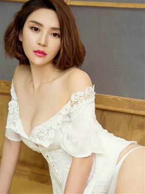 嫩模林鑫居家白色睡裙半脱秀傲人美乳狂野性感写真,广东美女图片