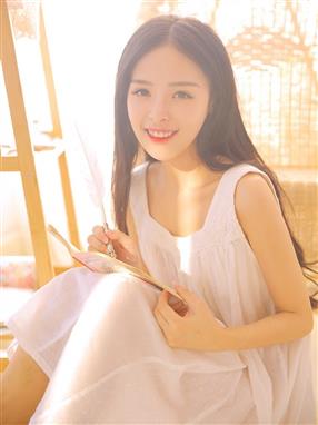 氧气美女吊带香肩白裙美腿清新气质私房写真