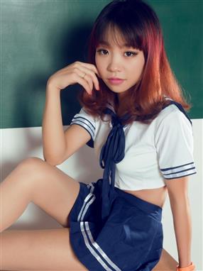 丽柜美腿模特蓝色学生制服肉丝美腿写真