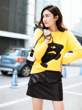 美女刘芸黄色毛衣初秋穿搭街拍范十足